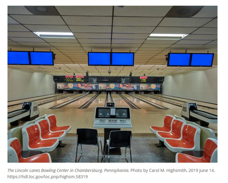 When viewed collectively, bowling alley interiors reveal recurring design themes>